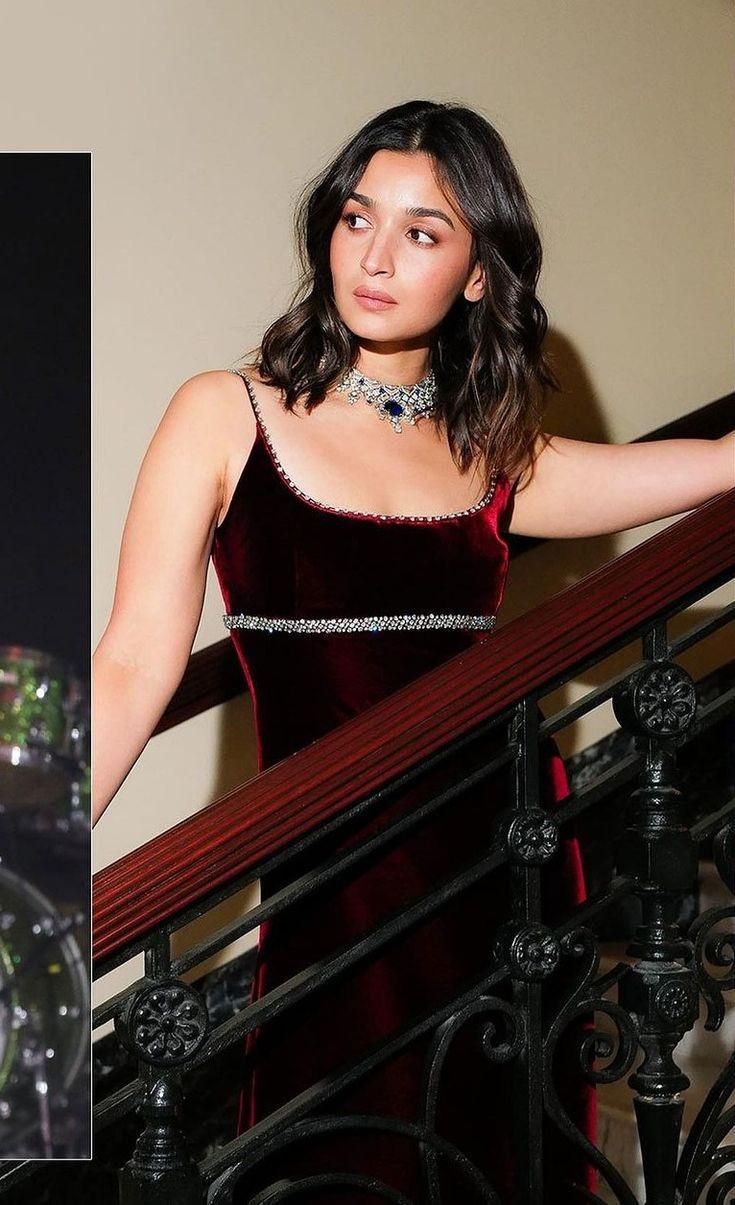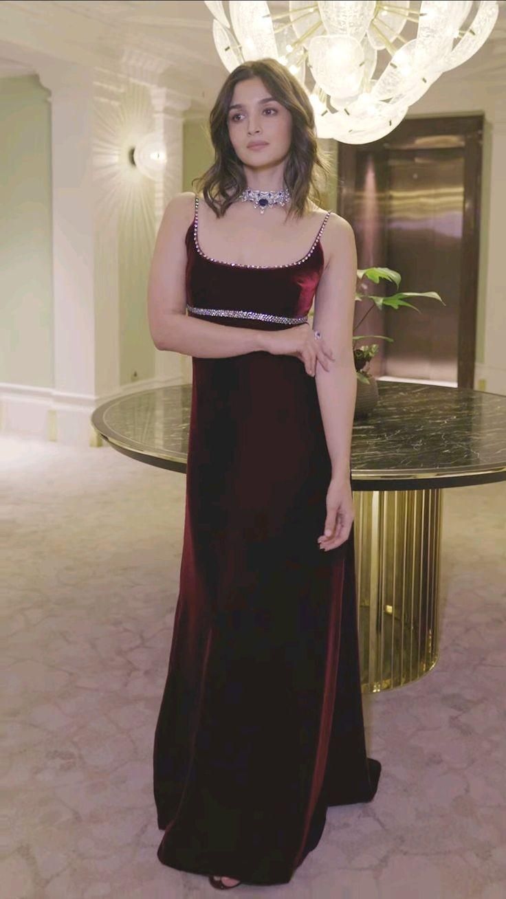 Channel your inner diva with this glamorous maroon velvet gown, inspired by Bollywood beauty Alia Bhatt! 🌟💃