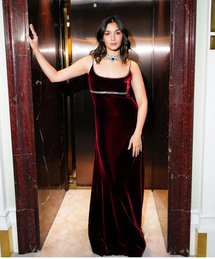❤️ Alia Bhatt-Inspired Maroon Velvet Gown ❤️
